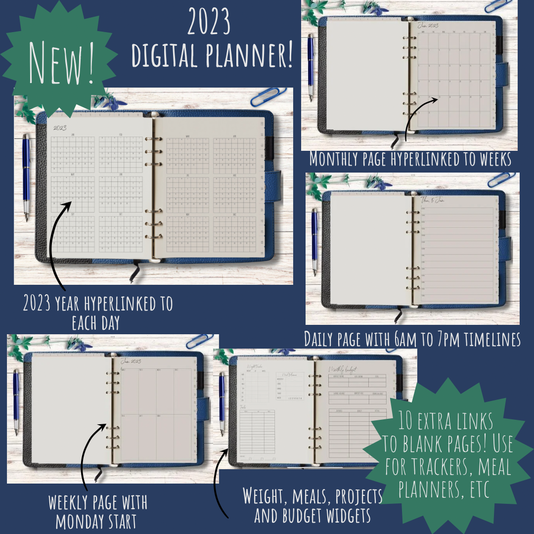 2023 Dated Digital Planner, for GoodNotes, ZoomNotes or any pdf annotation app. Monday start versions!