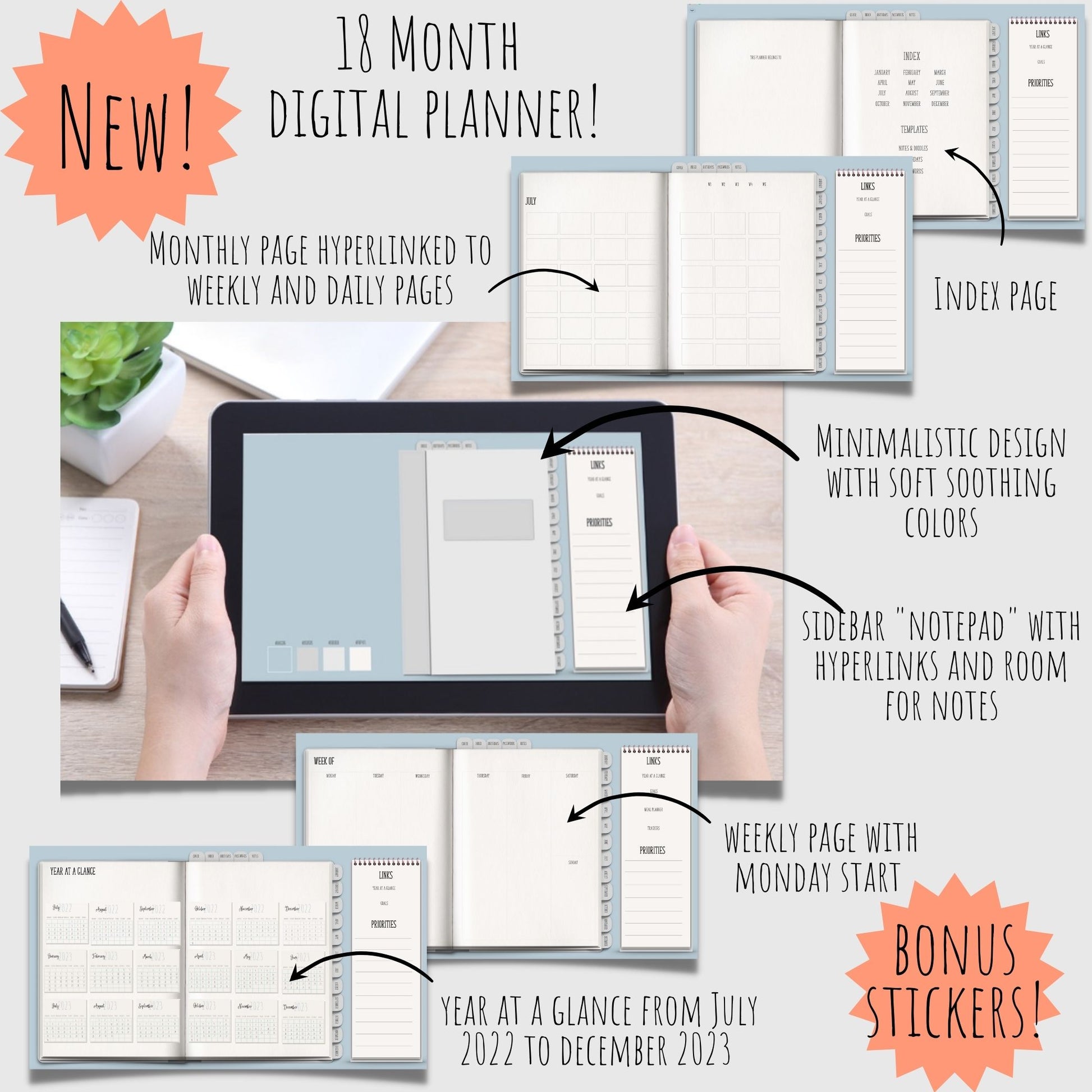 18 month Digital Planner, July 2022 - Dec 2023 undated GoodNotes Planner for GoodNotes, or any pdf annotation app.