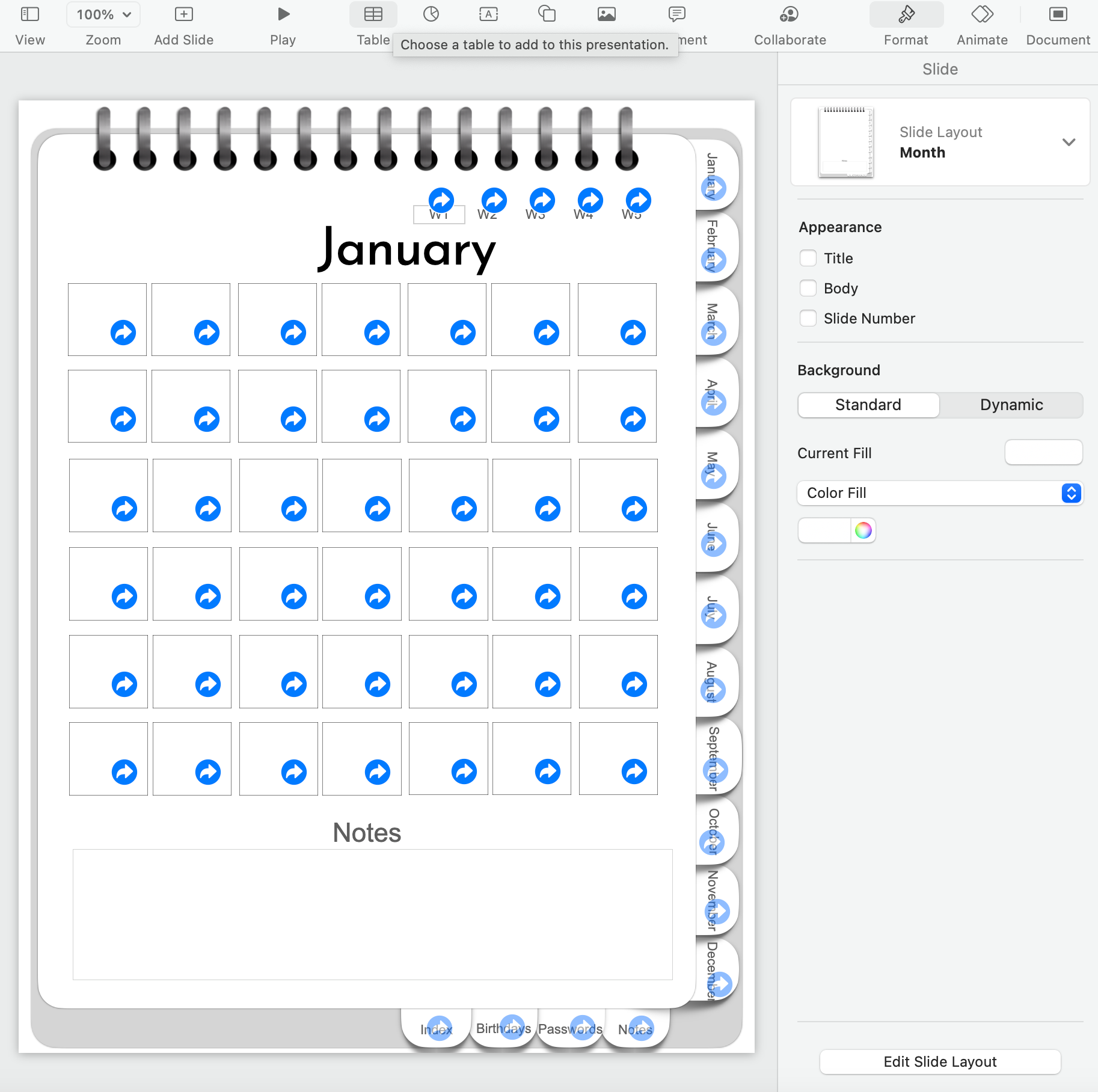 EDITABLE KEYNOTE FILE FOR PORTRAIT MODE DIGITAL PLANNER - HYPERLINKED MONTHS, WEEKS AND DAYS!