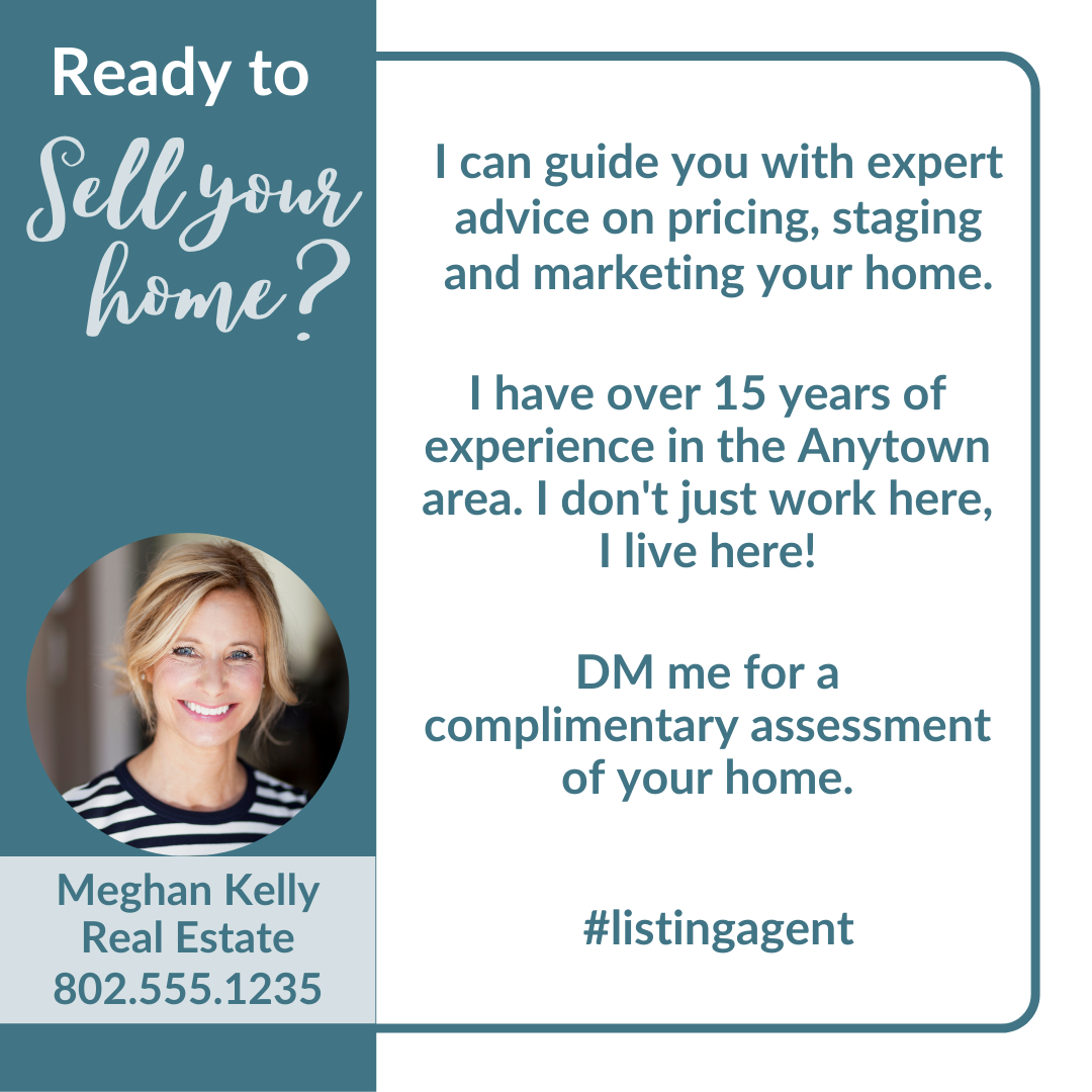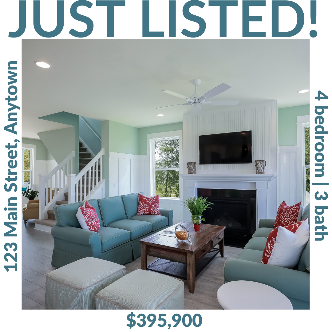 Upload photos of homes that you have listed or sold and just drag them into the image placeholders. Change the wording and post!